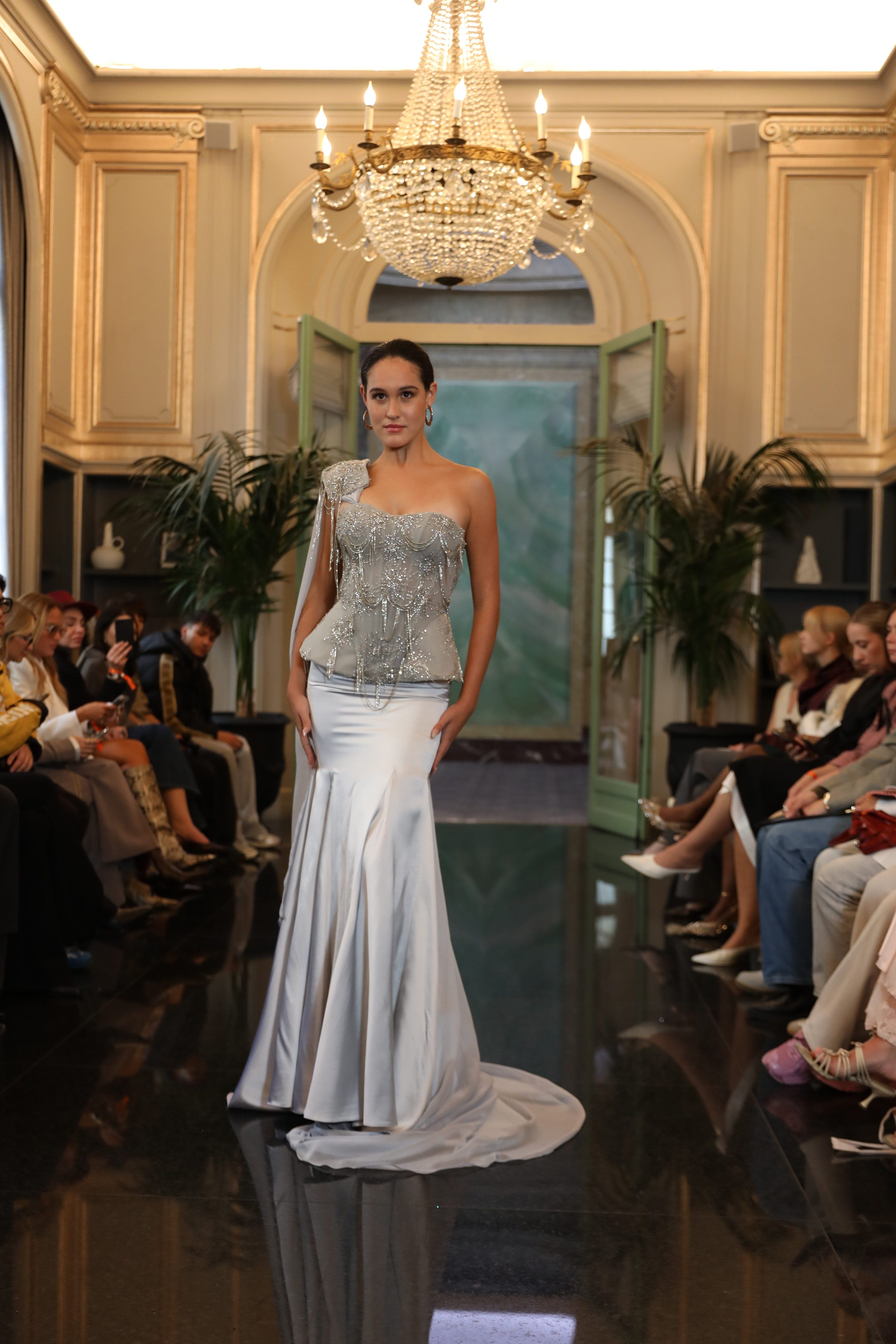 - The top section of the dress is constructed with premium crepe, providing a snug yet comfortable fit.