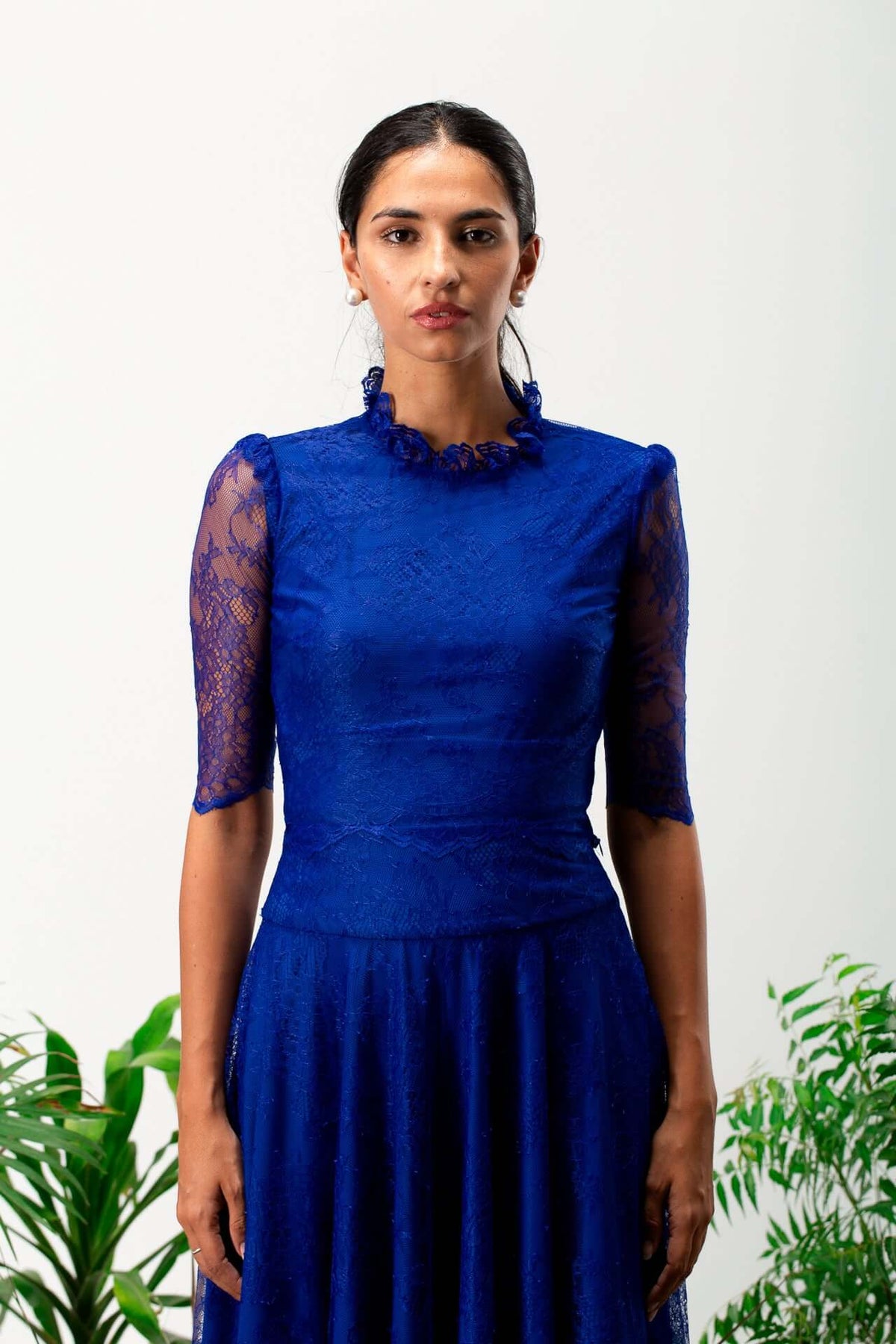 • The top section of the dress is constructed with premium crepe, providing a snug yet comfortable fit.