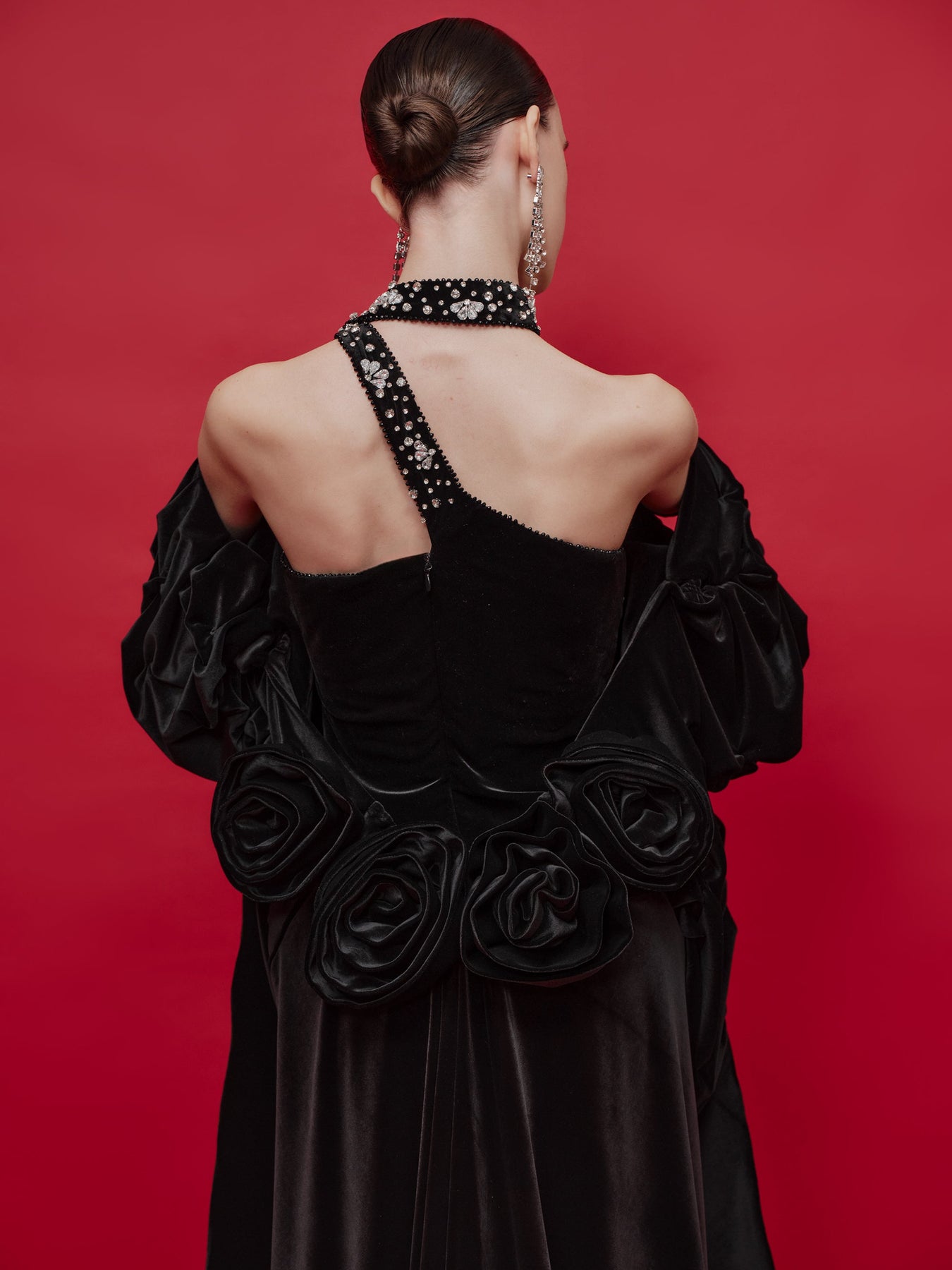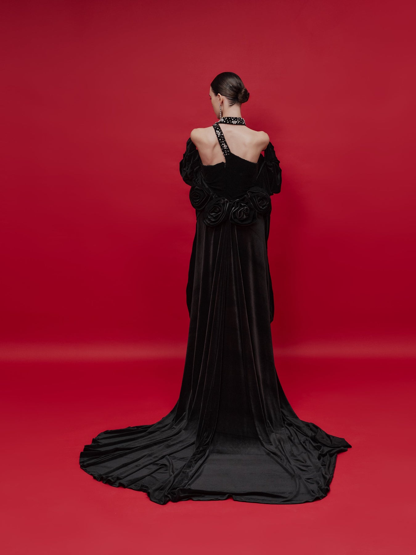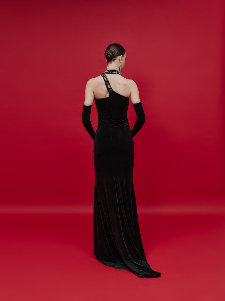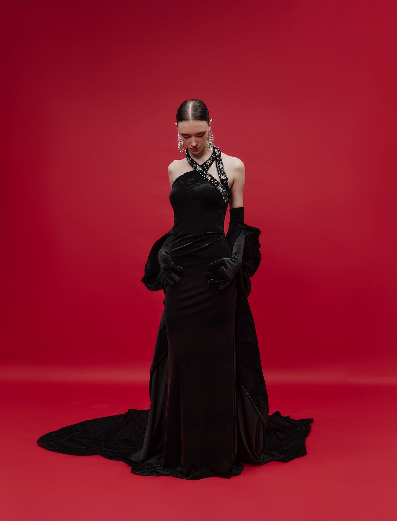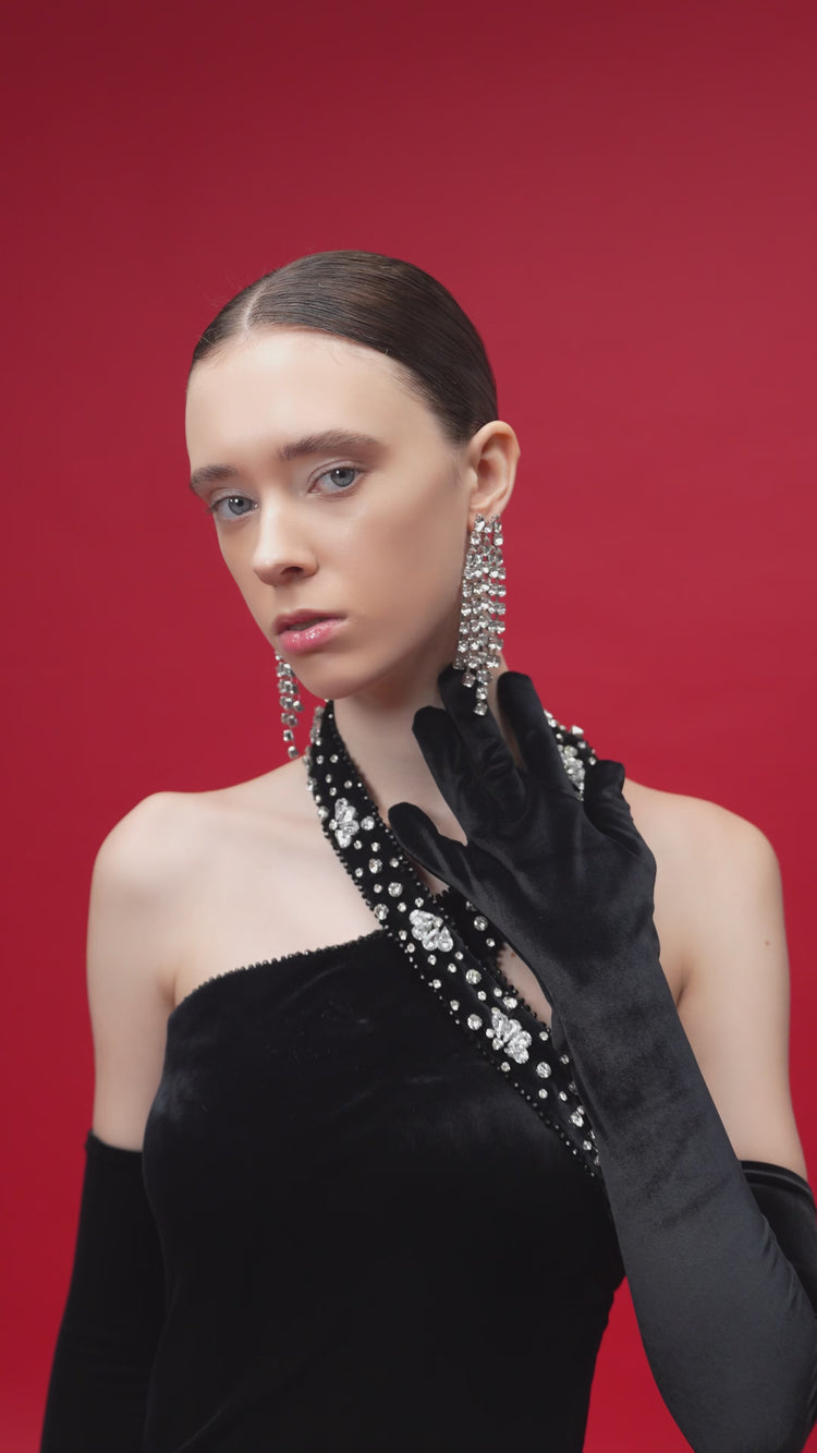 فستان سهرة فاخر فستان أسود مع قفازات فستان مخمل والوصلة والقفازات مصنوعة ببراعة من المخمل، مما يجعله فستان فستان فانيت المثالي لأي مناسبة. قماشه الفاخر يضفي لمسة من الأناقة، ويضمن الراحة. استمتعي بنعومة المخمل وتألقي بأناقة مع فستان فانيت.