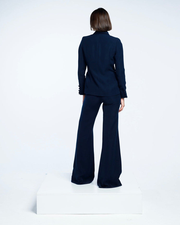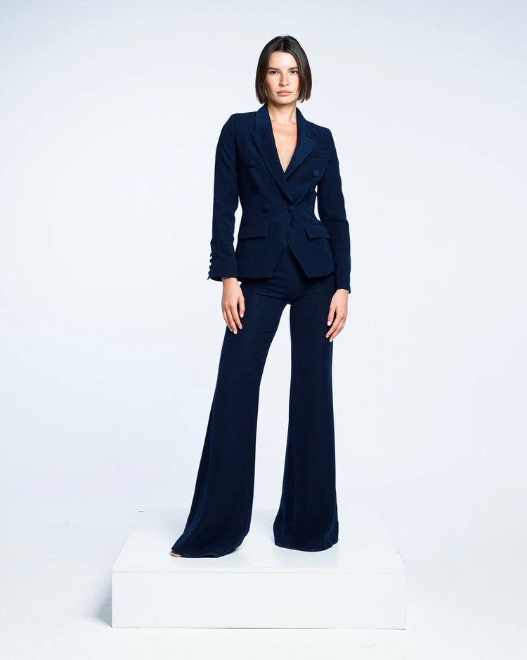 Introducing a modern interpretation of the iconic double-breasted blazer. Available in both white and navy blue, these blazers are meticulously tailored for the empowered woman of today. The crisp white blazer reflects an aura of pure elegance, while the navy blue embodies timeless sophistication. Both pieces, with their impeccable design, serve as versatile additions to any wardrobe.